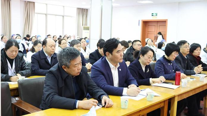 南通大学纪委副书记曹玲、通大附院全体在通院领导以及老年康复医院全体院领导、中层干部参加会议。
